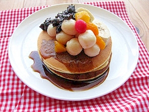 簡単パンケーキアレンジ 白玉あんみつのパンケーキ レシピ 作り方 By 楽天出店店舗 ウルトラミックス 楽天レシピ
